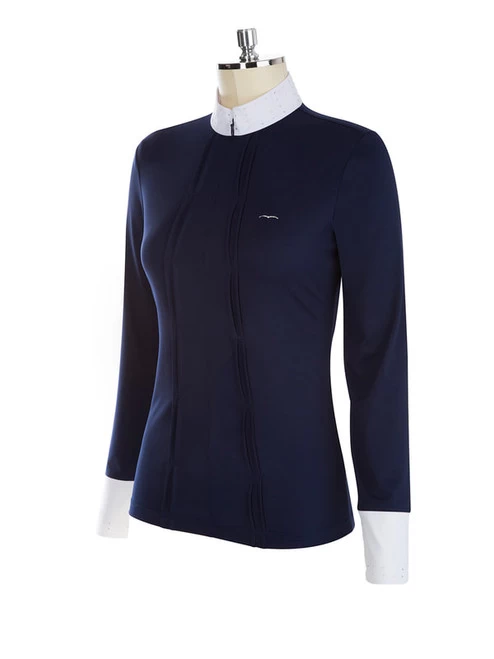 Ladies Bruce Show Shirt from Animo offers a smooth, silky soft technical fabric that stretches for total comfort. It is wicking, quick drying, and helps prevent odor formation. Lovely long sleeve show shirt is available in black, navy, and white, all with white collars and cuffs. Don’t miss out on this one!