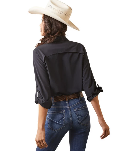 Women’s Ariat VentTek II Stretch Shirt is performance riding wear designed to provide comfort and style all day. Ariat’s lightweight long sleeve VentTEK Shirt delivers peak performance with moisture wicking, breathable fabric technology. With hidden ventilation across the shoulders, UPF 50+, and underarm gussets for mobility, this Ariat riding shirt has it all.