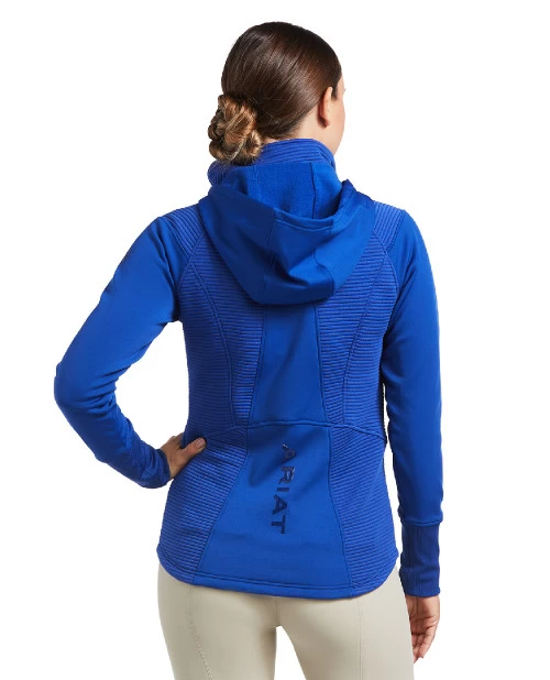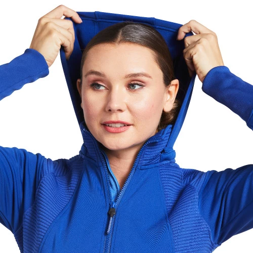 Ariat Wilde Full Zip Sweatshirt has all the modern looks and comfort of Ariat performance equestrian wear. Part of the AriatTEK Cold Series, the Wilde Sweatshirt will keep riders warm with soft fleece interior, removable hood, and high mock collar. The gorgeous Mazarine Blue color and quilted panels add distinctive flair.