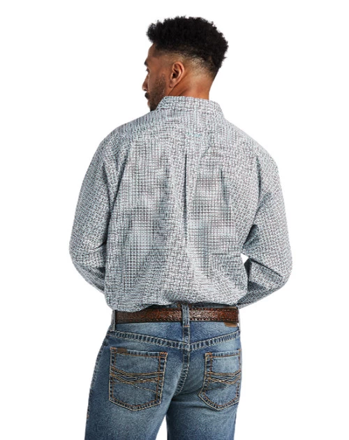 Ariat Wrinkle Free Victor Classic Fit Shirt for men looks sharp and stays that way ride after ride. You’ll maintain a polished, professional look whether you’re in a competition or at the office. The low key geo print is versatile and timeless. Ariat Victor Wrinkle Free Shirt has a box pleat in back, single pocket, and button down collar. Contrast solid color lining the cuffs and collar adds a finished, upscale look.