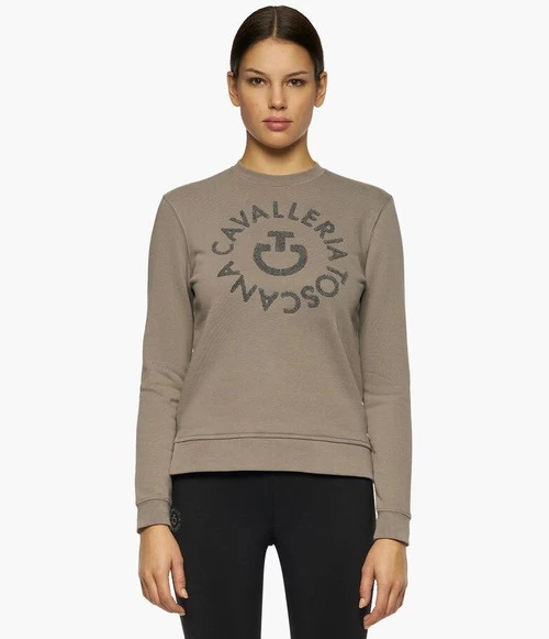 Cavalleria Toscana adds its own unique flair to a leisure wardrobe classic with the Orbit Logo Sweatshirt. In Burgundy, Navy/Smoky Blue, or Taupe Grey, The Orbit Logo Crew Sweatshirt is made for casual horse riding and relaxation. Women’s sweatshirt is high quality cotton fleece and is finished with the terry loop raised logo that creates a striking, tactile graphic.