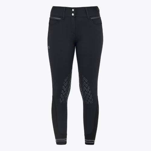 Cavalleria Toscana Silicone Logo Breeches in knee grip style are a riding wardrobe necessity with technical function and classic CT style. Ladies breeches have a high waist and contoured wide waistband that’s designed for flattery and riding comfort. Ergonomic seams and stretch socks ensure an outstanding fit.