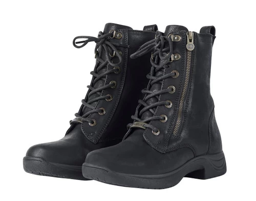 A fun and versatile lifestyle boot, The Dublin Tilly has a lace up front so you can adjust the fit plus a side zipper for quick on and off.ย Dublin’s RCS (Rider Comfort System) has five layers that work together to keep your feet cool, comfortable, and supported. There’s a Sweat Control Lining, Enhanced Cushion Layer, Padded Heel Cushion, Cupped Heel & Arch Support, and Steel Shank for stability. Dublin Tilly Waterproof Boots are the perfect mix of comfort, style, and versatility. If you are between sizes, choose the larger size.