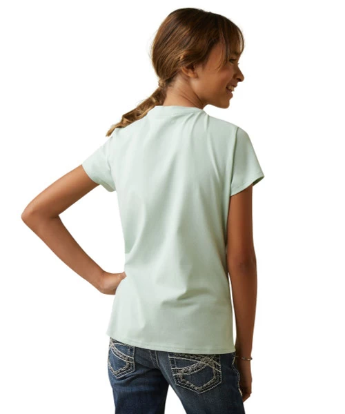 Ariat Harmony Short Sleeve Tee for girls is a crew neck style that’s perfect for riding, school, and having fun. Kids will appreciate the soft feel of this horse-theme tee that has a feminine fit and all-day comfort. Kids Ariat Harmony Tee is another quality Ariat tee shirt in soft stretch organic cotton.