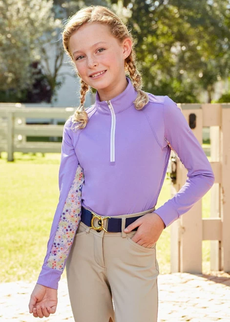 Girl’s long sleeve Lyla 37.5 Training Shirt is soft and stretchy with a classic quarter zip neckline and feminine styling. The children’s Lyla shirt is perfect for schooling and lessons when riders need to work hard and maximize their training. The RJ Classics Lyla Junior 37.5 Training Shirt delivers excellent comfort and performance benefits to young riders and keeps them looking stylish too.