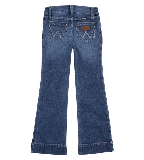 Girls Wrangler Trouser Jean have a stylish wide leg plus classic Wrangler elements and practical stretch denim. The Trouser Jean in Daisey denim wash has 2% spandex to add just the right amount of stretch for all day comfort.