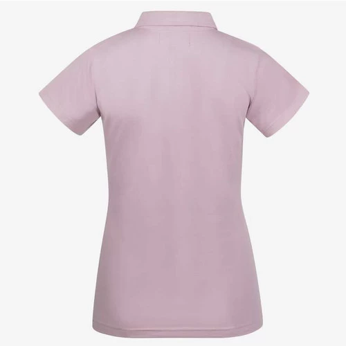 The Horze Amy Stretch Pique Polo Shirt in Purple and Egret White is super soft, stretchy, and lightweight for warm weather riding. Women’s short sleeve polo shirt has a feminine fit without being snug. The quarter zip placket is a nice modern touch and allows you to adjust the neckline precisely. There’s an elegant little sequin horseshoe at the front for chic equestrian flair.