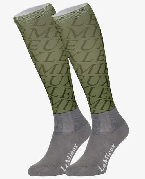 Fun and playful but with serious performance, the LeMieux Footsie Socks in young rider sizes are here in awesome prints! With padding in the sole and ankle plus a thinner calf, these equestrian knee socks for kids offer an outstanding fit.