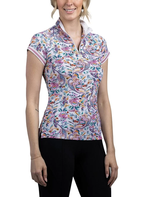 The Kastel Denmark Cap Sleeve Shirt with Trim not only offers great style and sun protection, the moisture wicking fabric is antimicrobial to reduce odors from forming. Kastel Denmark sun shirts are a smart choice for riding and the pretty styles assure you can wear them for other outdoor sports like running and hiking. The Cap Sleeve Shirt with Trim in exclusive prints like Gray/Sage Botanical and Light Blue Cocktails from Kastel will help you enjoy your summer rides in style and comfort.