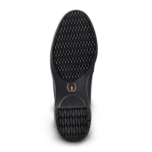 Kerrits Cascadia Paddock Boot is built with a K-Stride midsole that absorbs shock to reduce fatigue and provides a stable foot base. A removable 3-D molded antimicrobial insole inhibits odor formation. The insole has a cushioning Kerrits logo pattern on the underside for comfort with every step. Cascadia’s outsole has an OrangeZone traction design for secure stirrup grip. The innovative SpurSync molded heel protects the rear of the boot from excess wear and provides grip to keep your spurs from sliding. An off-set zipper and elastic gores make it easy to put on and remove the Cascadia riding boot and allow a close fit and comfort under half chaps. The new Kerrits Cascadia Waterproof Paddock Boot comes from the rainy Northwest so you know they’re perfect for wet weather rides!