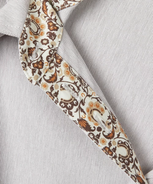 Women’s long sleeve Kerrits Equitate Button Up Shirt has updated, feminine oxford shirt styling in a lightweight stretch fabric. The micro-striped fabric and floral collar and cuff trim add to the fresh look. Princess seams and a fit that follows body contours without being fitted create a flattering and confident look in the saddle. Strategically placed double buttons prevent gaps. The Equitate Button Up Shirt has a shirt tail hem that stays in place when tucked in and button cuffs on the long sleeves.