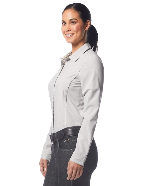 Kerrits Equitate Button Up Shirt gives equestrians a polished, pretty option for technical riding shirts. With its wrinkle resistant, breathable fabric and flattering lines, the Equitate Shirt will be comfortable and sharp looking for clinics, show schooling, teaching lessons, and daily riding.