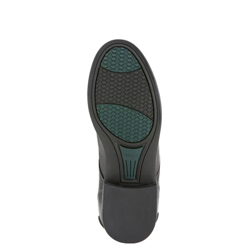 Kids’ riding boots have a contoured ankle and stretch laces. The tighter fit system of these Ariat tall riding boots for children achieves that sleek silhouette every rider wants. They are finished with antique brass logo hardware on the swagger tab, high Spanish top, and spur rests. The Heritage Contour boots have Ariat’s 4LR footbed that cushions and supports the foot. A moisture-wicking sock liner keeps feet dry and the flexible, wear-resistant Duratread outsole provides outstanding stability and comfort. Ariat tall boots are the ones your child will want for serious style, riding performance, and quality. In Black with Extra Slim, Slim, and Regular calf widths.