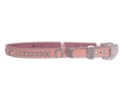 Kids Rhinestone Horseshoe Belt from Kamberley Group in Los Angeles has distinctive Western style for young riders. This leather belt in pink or black has light tooling and classic embellishments. Extra bling on the buckle, keeper, and tip add plenty of sparkle.
