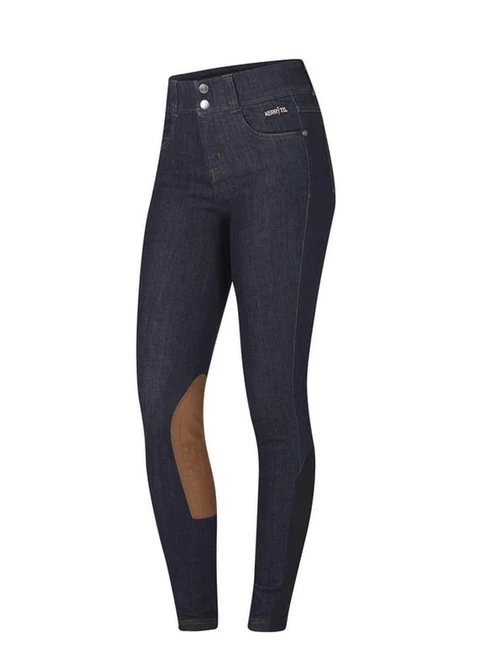 Kids Stretch Denim Knee Patch Breeches from Kerrits have classic jeans style plus all the comfort and practical features for English riding. Kerrits Stretch Denim Breech for girls is made with a soft, stretchy technical fabric that wicks and dries and has excellent shape retention. The knee patches are Kerrits GripSoft material that grip like leather and are stretchy and flexible. The dark indigo wash, classic five-pocket styling, and contrast stitching add authentic touches to these Stretch Denim Breeches.
