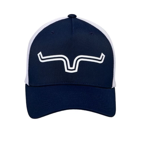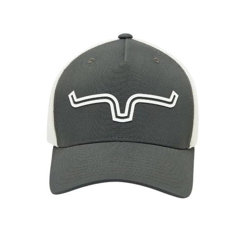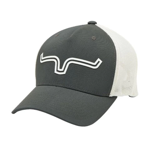 Kimes Ranch Double Trac 110 Cap features the iconic Kimes Ranch horns on the front in a white outline and FlexFit Tech for comfort. The horns are raised rubber/silicone with a clean, crisp look.ย The hat has a solid panel front with high quality mesh in back.