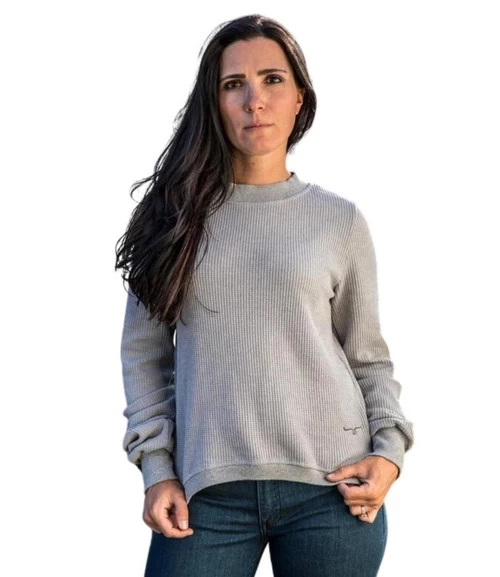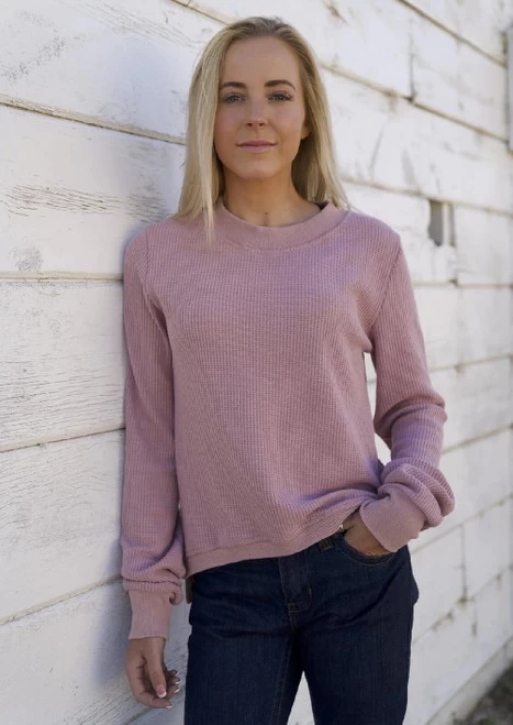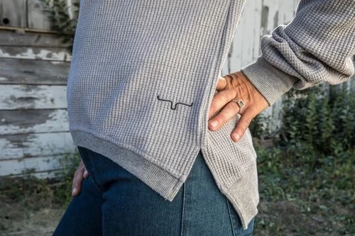 Kimes Ranch Ladies Portales Thermal Crew is not your typical thermal shirt! Super cute and updated long sleeve shirt has a slight cropped length and wide crew neck. The relaxed fit and slouchy sleeves of the Portales Thermal Crew add up to total comfort.