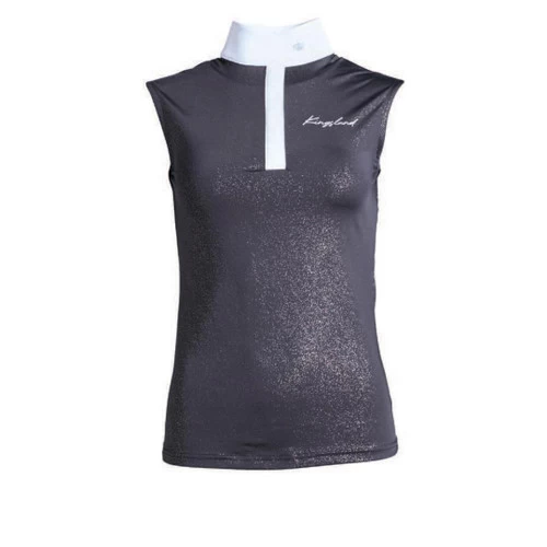 KL Paisely Show Shirt for summer manages moisture with breathable, wicking, quick drying performance fabric. Hard working fabric also knows how to have a little fun with beautiful shimmer. A silver glitter Kingsland script logo is a fancy finishing touch. Mary’s has the ladies Kingsland KL Paisely Sleeveless Show Shirt in White and Navy.