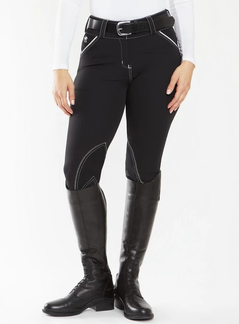 Piper Evolution Mid Rise Breeches Knee Patch -Equestrian Clothing piper evolution mr kp black.wh front 33430 smartpak 44498.1679011406