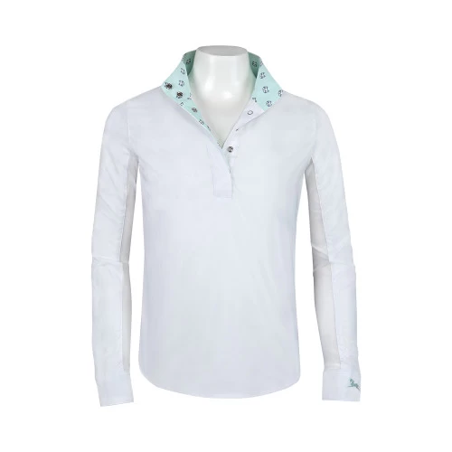 RJ Classics Rebecca Jr Show Shirt is a fantastic horse show shirt for girls with an excellent fit and comfortable feel. The Rebecca Junior Show Shirt is made with performance fabric that is luxuriously soft, silky, and stretchy. Long sleeve white show shirt for children wicks moisture and dries quickly for cool, dry comfort at shows.