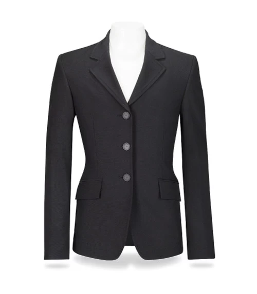 RJ Classics Skylar Junior 37.5 Show Coat gives younger competitors the latest performance technology plus classic show coat style. Girls three button Grey Label Skylar Show Coat from RJ Classics features 37.5 fabric technology for a competitive edge. The beautifully styled hunter jumper show coat in Black or Navy is lightweight, stretchy, and geared toward top performance.