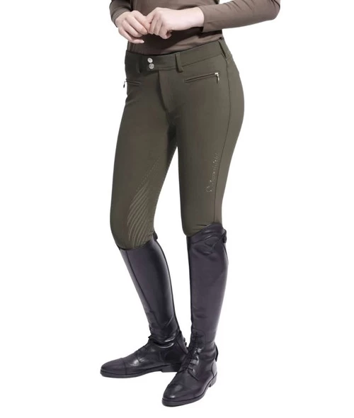 Samshield Adele English Riding Breeches offer a comfortable, close fit with excellent stretch for athletic performance. These Samshield Premium Line silicone grip breeches have a low rise with an inner hook and bar closure, front zipper and double snap tab for added comfort. The waistband has an elasticated lining to help keep your shirt in place, and the front has two low profile zip pockets and stretch Lycra sock bottoms for a sleek fit under boots.
