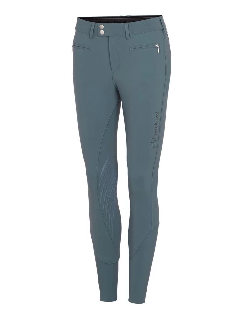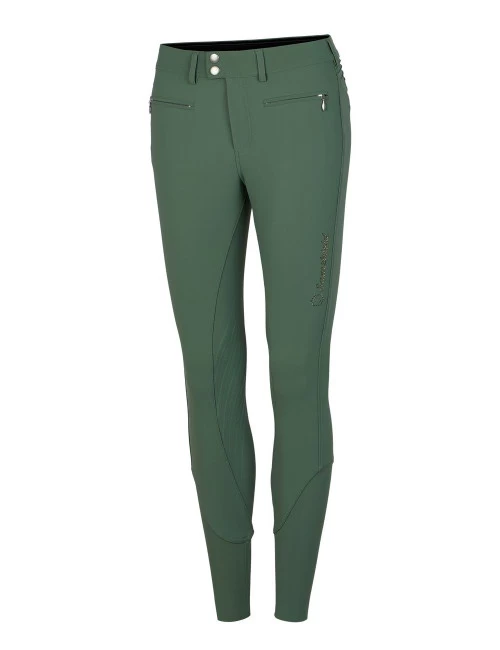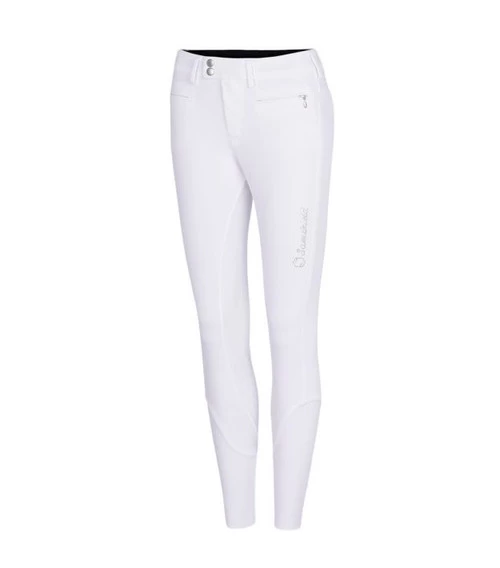 Samshield Adele breeches have a beautifully tailored design with elegant pleats at the back yoke and silicone grip knees for flexible grip in the saddle. They’re made of a technical fabric that features four-way stretch and UV blocking, and the material is soft and smooth, durable and wrinkle free. It’s also breathable and moisture wicking for long days in the saddle. The back of Samshield’s Adele English riding breeches features two faux back pockets embellished with Swarovski crystals in a coordinating color, while the left thigh has a Samshield logo created with Swarovski crystals. With a high fashion look combined with practical technical performance features, Samshield’s Adele Breeches in neutral and seasonal colors are destined to be a favorite part of your riding wardrobe.