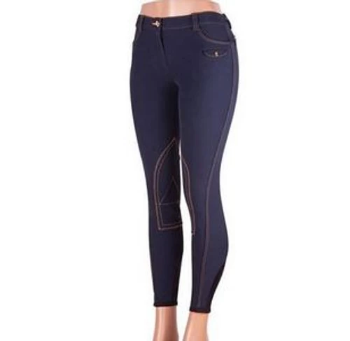 Sarm Hippique Aprica Knee Patch Breeches are made in Italy from premium performance fabric that’s durable and comfortable. The Aprica has a luxury look with beautiful gold stitching and details. These euroseat front zip riding breeches for women have two zip pockets in the back with gold trim, a small pocket in front, and nice 2″ wide belt loops that will fit all your favorite riding belts. Sarm Hippique ladies breeches have a low profile Velcro closure at the ankles. The Aprica has a flattering fit, contoured waistband, and stylish look that is classic Sarm Hippique.