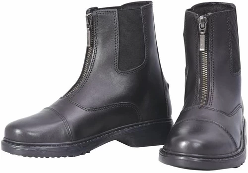 TuffRider Kids Perfect Zip Paddock Boots are leather paddock boots for children at an outstanding budget-friendly price. TuffRider paddock boots are ideal for the occasional rider, beginner, or the child who outgrows boots before they can wear them out. TuffRider paddock boots are a smart choice, with excellent features for comfort and style. TuffRider created these children’s riding boots to be comfortable, durable, and offer good quality at a low price. Paddock boots for boys and girls have a genuine leather upper, sturdy black zipper, and a cushioned synthetic sole. The elastic gores at the ankle allow comfortable stretch if needed. Boots have a plain toe cap, classic styling, and spur rest at the heel. Pair these TuffRider paddock boots with half chaps for kids for total riding comfort.