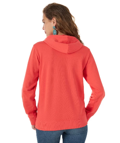 Wrangler Geo Hoodie is a creative interpretation of a classic Western brand and motif. The Southwestern pattern plus iconic Wrangler name in shiny silver against intense pink has a bold and fun energy. Ladies cozy hooded sweater has a kangaroo pocket, softly brushed interior, and a light/medium weight for multi-season enjoyment. Ladies Wrangler Geo Hoodie is a pullover style for quick and easy comfort and warmth.
