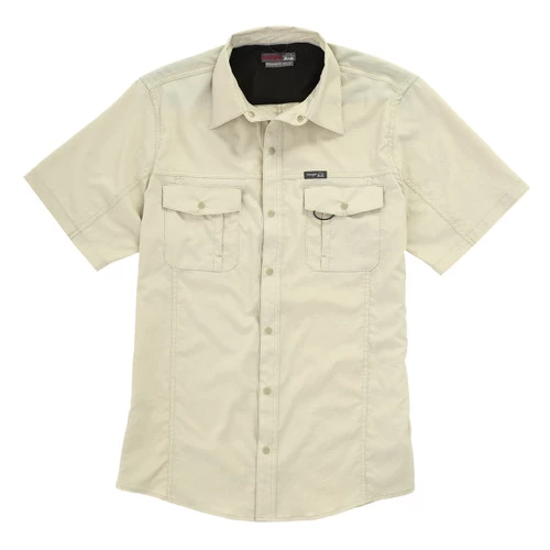 Wrangler Hike to Fish Khaki Shirt with short sleeves is a men’s lightweight summer shirt for riding and recreation. The UV protective performance fabric is silky soft and will keep you cool and dry. Hike to Fish Khaki Shirt from Wrangler wicks moisture, dries fast, and works well with Western, sporty, and outdoorsy wardrobes.