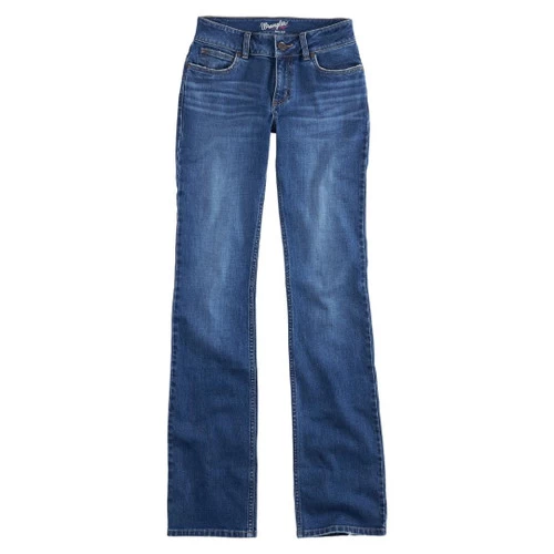 Wrangler Mae Mid Rise Boot Cut Jean in new Kasey wash has classic good looks, comfortable stretch for riding, and a fit that flatters. Women’s Western jeans for horseback riding feature a practical bootcut leg and three lengths to choose. Women’s Wrangler Retro Mae jeans are cotton denim with a bit of spandex for easy movement and figure-hugging fit.